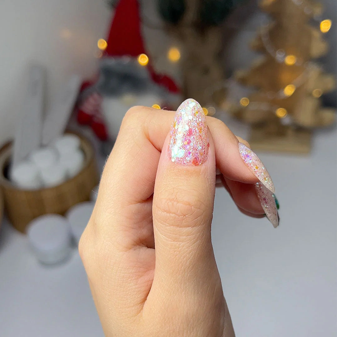 Vi introducerer Frosty, en glimmerfarve med klare undertoner, der tilføjer et strejf af magi til din manicure! Med forskellige størrelser af skinnende regnbuestykker løfter denne alsidige farve ethvert neglelook og er perfekt til accentnegle eller til at blande med dine ensfarvede nuancer. Omfavn din legesyge side og glimt som en diamant (eller en regnbue)! Indeholder naturlige botaniske ingredienser og holder i op til 5 uger uden at skalle af.